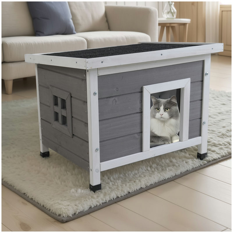 Cat House Waterproof Feral Kitty Shelter Outdoor Indoor Rabbit Hutch for Bunnies,Cats,Dogs and Other Small Animal