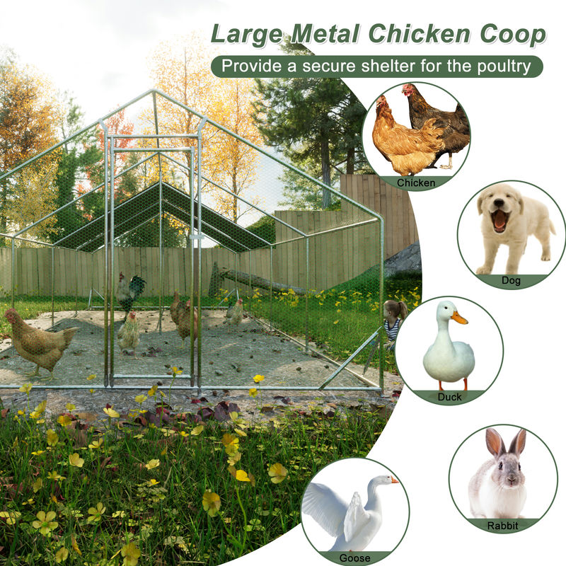 Large Chicken Coop Metal Chicken Run with Waterproof and Anti-UV Cover, 9.84′ x 13.12′ x 6.56′