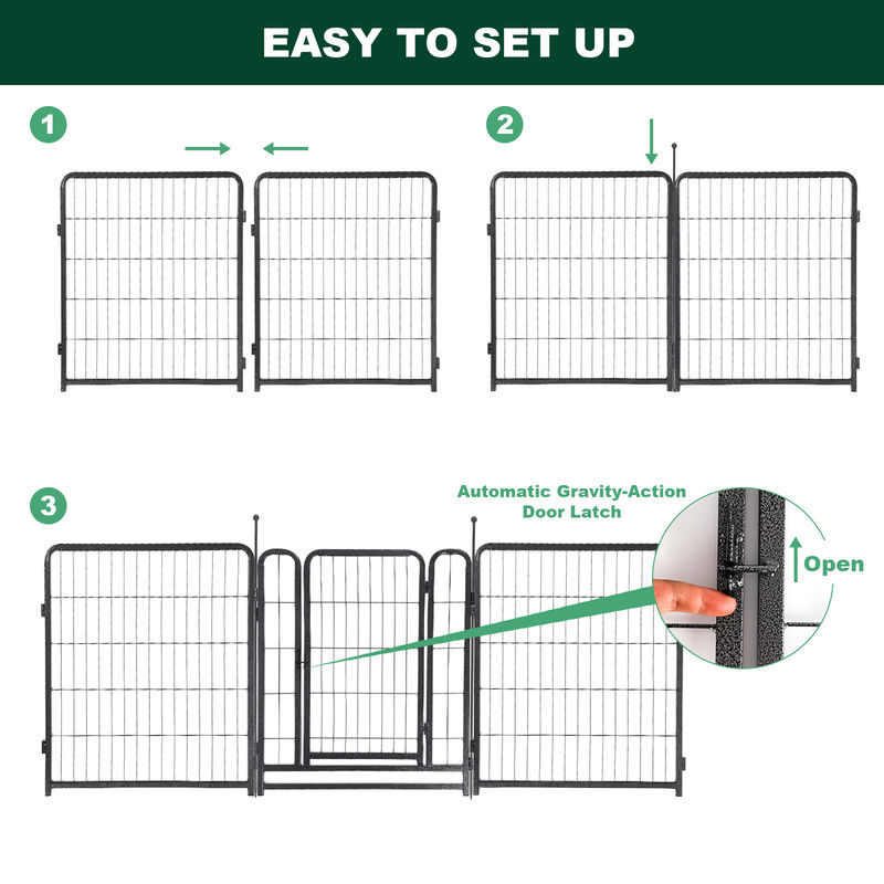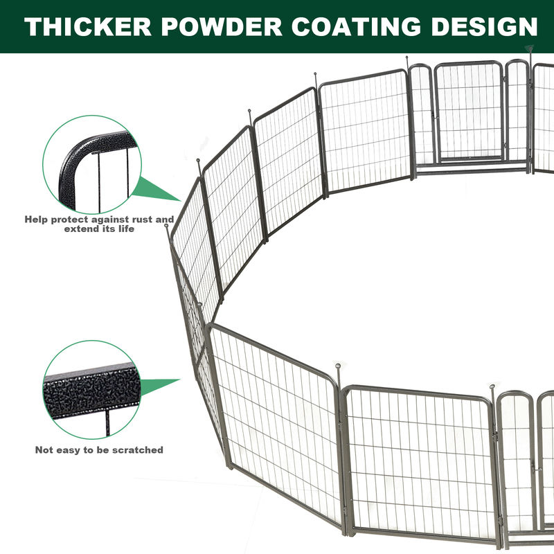 • Pet Fence’s surface has two layers of hammer pattern coating. The coating has a smooth silver-black surface, and is not easy to peel and rust. It can be placed in all kinds of weather