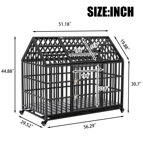 1.The size is right The 52-inch size is suitable for medium and large breeds and provides enough room for the dog to stay comfortably in the crate. For larger dogs, space is an important consideration to avoid them feeling cramped or uncomfortable. 2.Carbon steel material Carbon steel is a high-strength metal material with good durability and corrosion resistance. Carbon steel dog cages are usually able to withstand large forces of pulling and are ideal for dogs that are active or prone to damaging the cage. Carbon steel is more durable than other materials, such as chicken wire. 3.Spire design The spire design helps prevent dogs from climbing or jumping out of the crate. This is very important for dogs that are very energetic. The structure of the pointed roof increases the height of the cage and also prevents the dog from escaping through the top. It also increases the family’s interaction with the dog 4.Security Carbon steel peaked dog cages are usually designed to be strong, and the locks and structure can effectively prevent the dog from escaping, while maintaining good ventilation to ensure that the dog stays comfortable in the cage. 5.Modern design The carbon steel peaked dog cage is suitable for the family environment, which is both functional and aesthetic. 6.Good ventilation Carbon steel cages are usually designed with multiple air vents or grates to ensure air circulation and keep your dog comfortable and hygienic. 7.Fix space Providing a fixed space for the dog helps the dog get used to activities in the designated area, which is conducive to training and management, especially in the dog’s excretion training and behavior management. 8.Combine aesthetics with functionality Such dog cages are usually simple in appearance, modern, and scientifically designed. It can meet the needs of the dog’s activities and rest, and can be integrated into the home environment without being too abrupt.